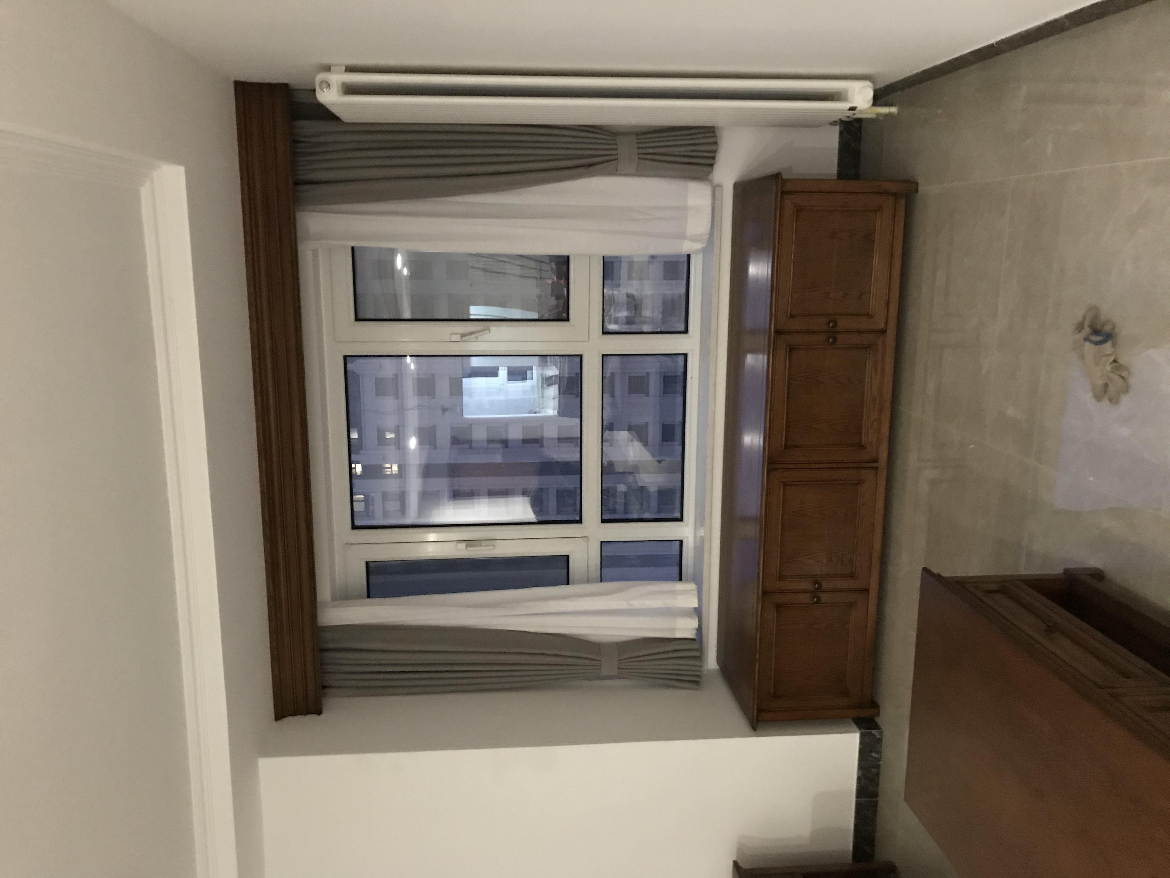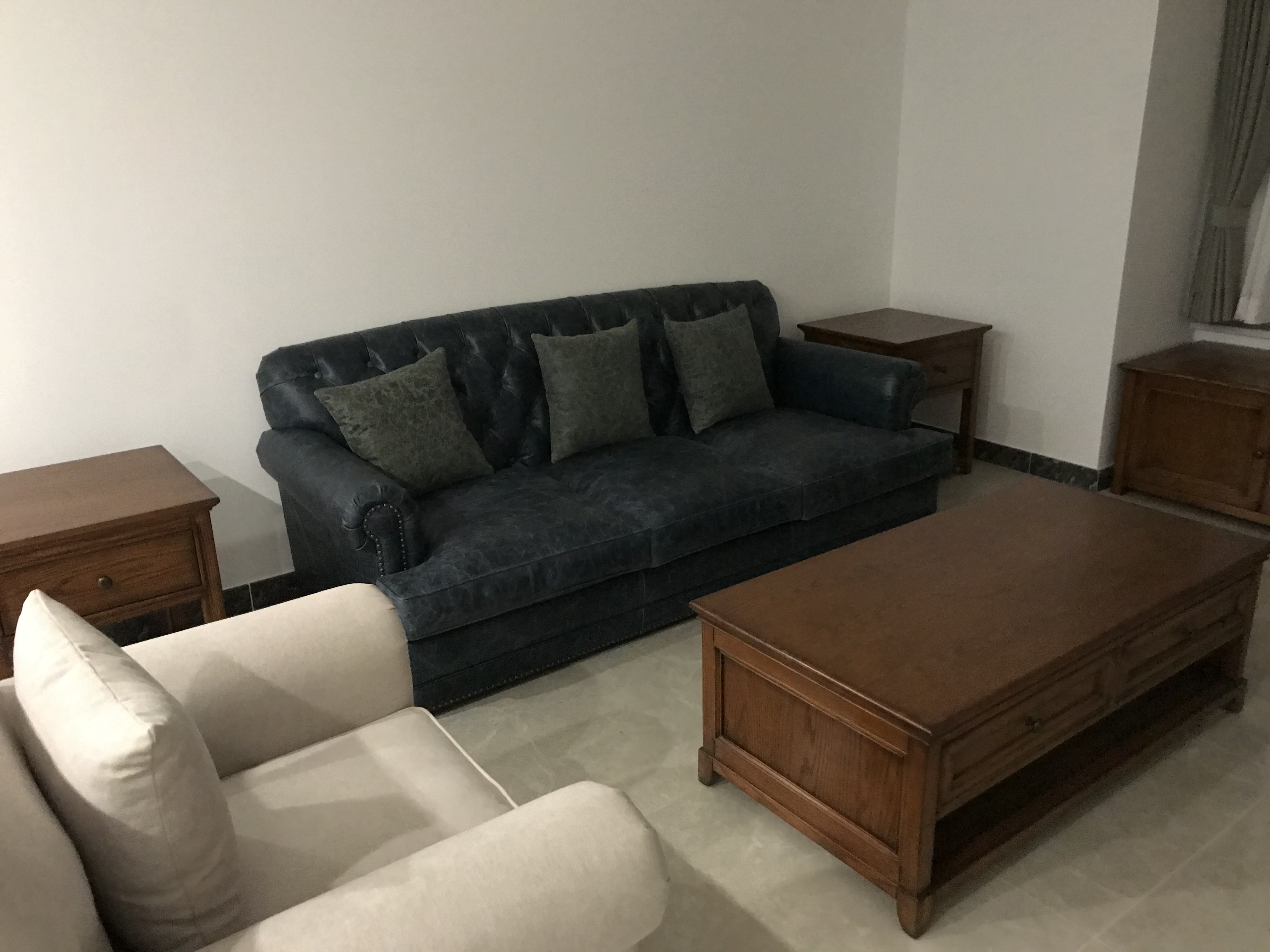 The dark brown wooden furniture sets a stable tone for the living room. The sofa, coffee table and side table complement each other. The open shelves have both storage and display functions, enhancing the sense of spatial order. Paired with simple curtains, it infuses the space with a light and modern feel. The collision of tradition and fashion creates a rich layering.