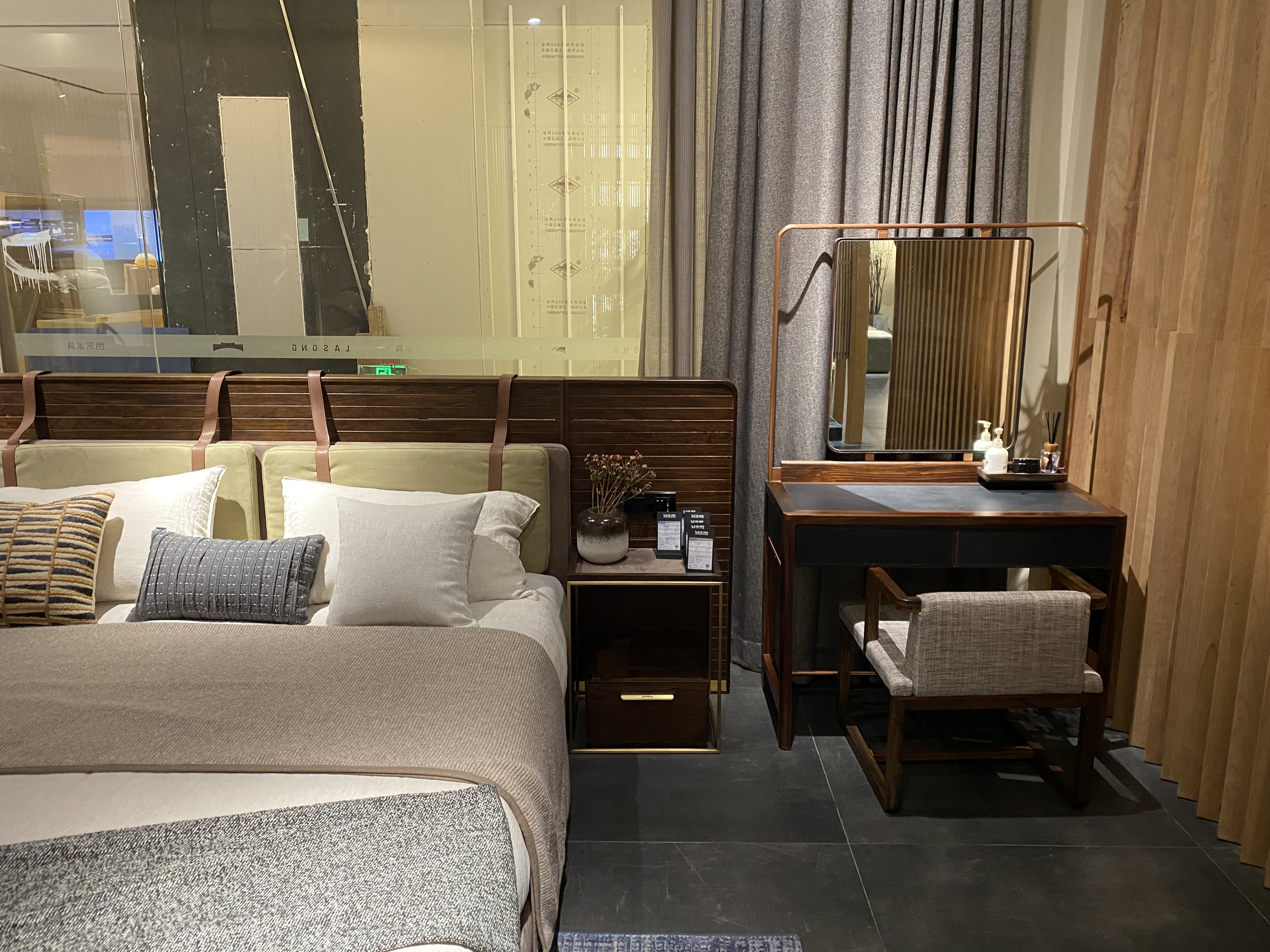 The solid wood material combined with soft light-colored soft furnishings is elegant and grand. The furniture design combines Chinese charm with modernity, presenting a simple and elegant look.