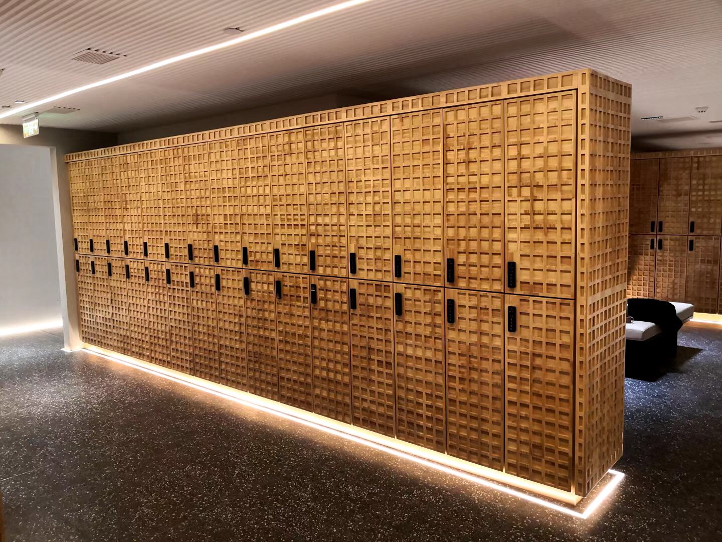 The wood itself conveys a natural and warm atmosphere. Combined with the geometric beauty of the grille, the embedded lighting, and the overall clean and neat layout, it presents a simple, neat, comfortable and unadorned look.